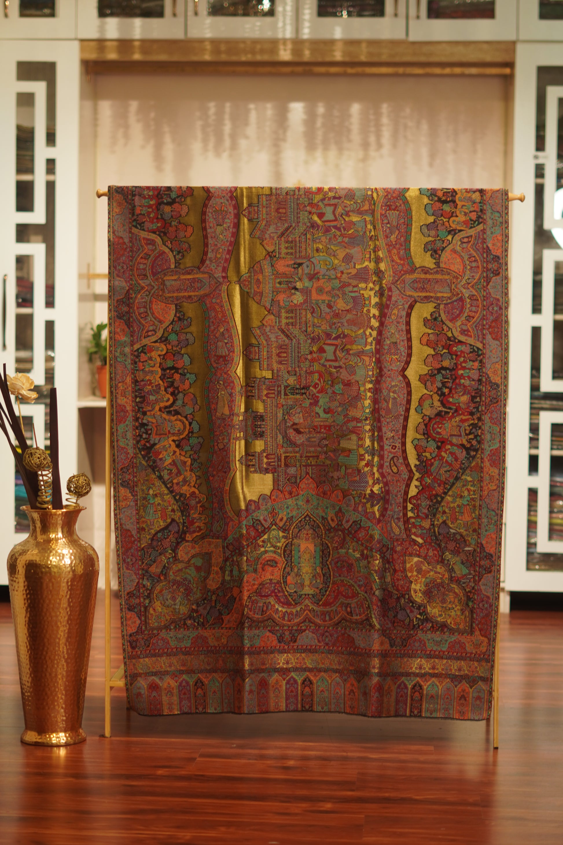 ✨ A graceful and beautifully woven Kani shawl inspired by soft moonlit tones and classic Kashmir weaving